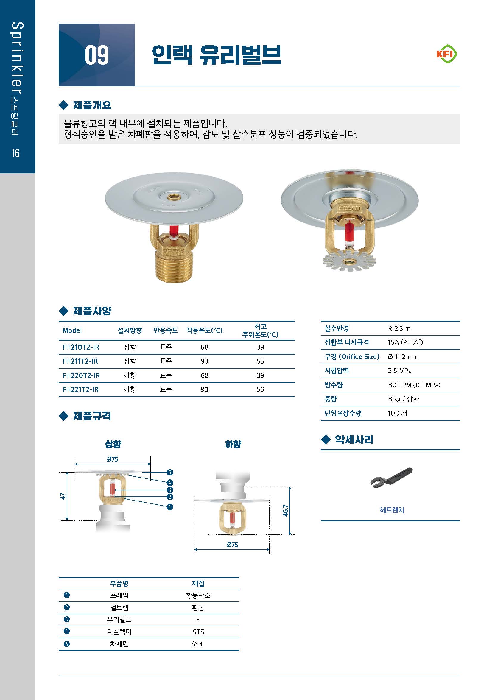 물류창고의 랙 내부에 설치되는 제품입니다. 형식승인을 받은 차폐판을 적용하여, 감도 및 살수분포 성능이 검증되었습니다.